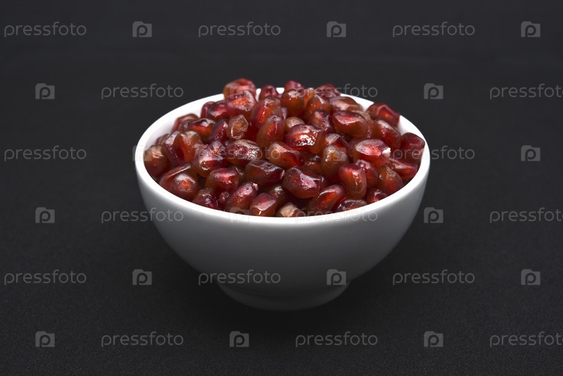 Плоды граната в керамической миске. Зерна плодов граната