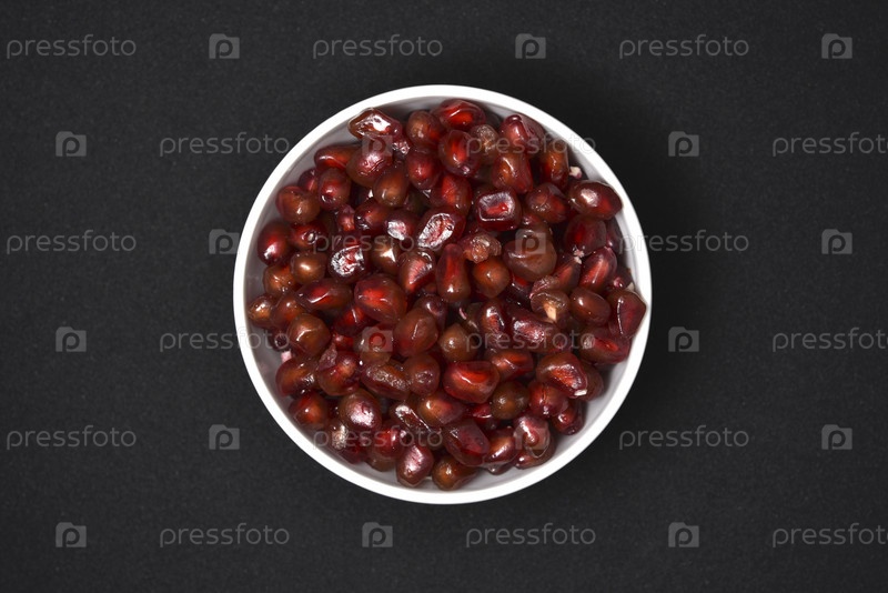 Плоды граната в керамической миске. Зерна плодов граната