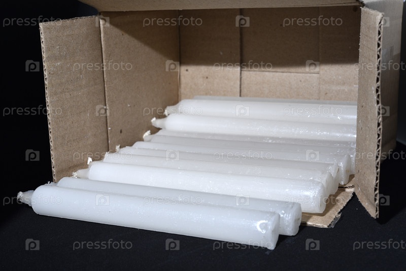 Белые парафиновые свечи в коробке. Бытовые свечи