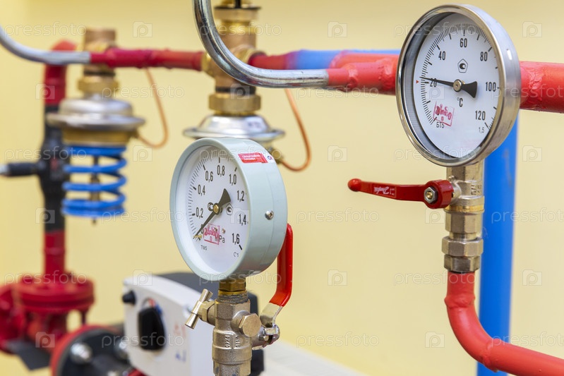 Россия. Санкт-Петербург. Система теплоснабжения. Приборы учета давления и тепла. система подачи тепла. устройства измерения давления и тепла
