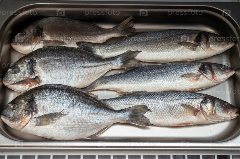 Свежая сырая рыба дорадо и сибас