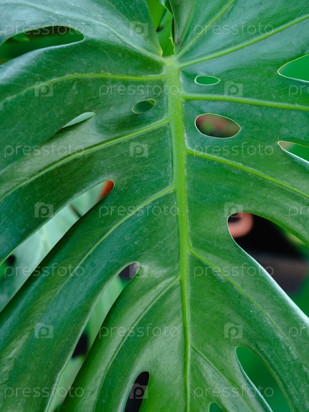 Зеленый сочный лист монстра по всему кадру. Изображение на заднем плане