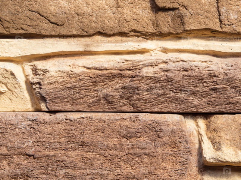 Каменный фон текстуры. Стена кирпичей песчаника в фото макроса солнечного света. Текстура декоративной каменной стены представляет собой фрагмент крупного плана