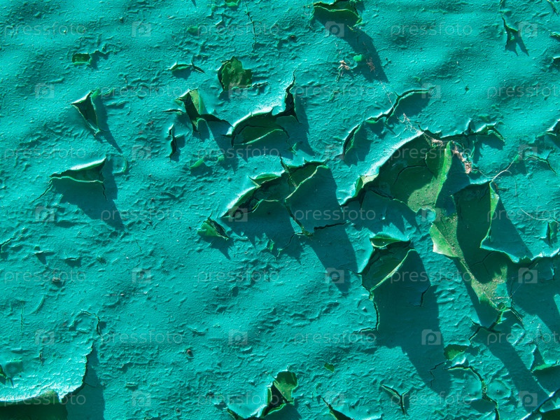 Текстура фона - Пилинговая краска бирюзового цвета. Текстура поверхности стены с шелушащейся зеленой краской
