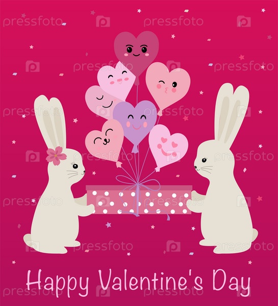 Счастливой пасхи открытка. Иллюстрация с милыми кроликами и яйцами. Векторная иллюстрация на белом фоне