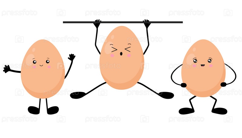 Набор яиц в стиле каваи. Векторная иллюстрация на белом фоне