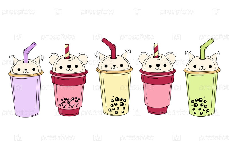 Чай, безалкогольные напитки в пластиковых стаканчиках, модный десерт, красочная векторная коллекция