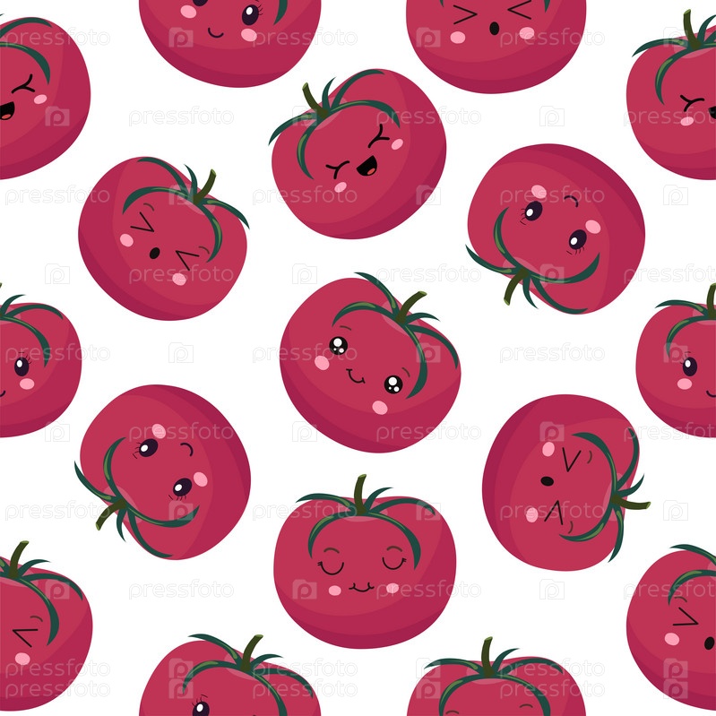 Бесшовный узор из розовых помидоров в стиле каваи. Векторная иллюстрация на белом
