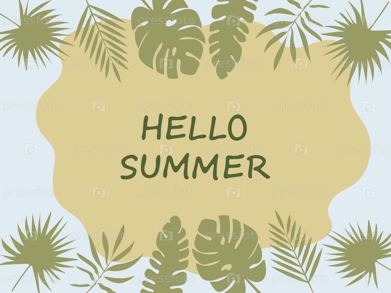 Ботанический баннер Здравствуй, лето. Яркий красочный баннер с зелеными тропическими листьями. Векторная иллюстрация