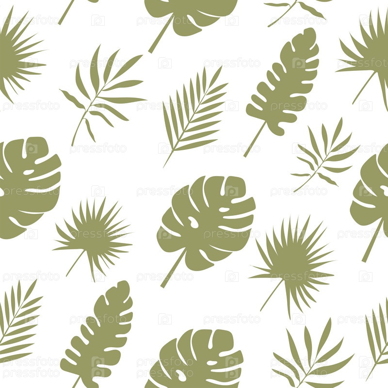 Бесшовный ботанический узор с зелеными тропическими листьями. Векторная иллюстрация на белом фоне