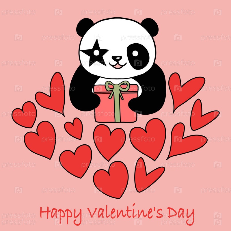 Валентинка с милой пандой и сердечками. Концепция любви. Иллюстрация на розовом фоне
