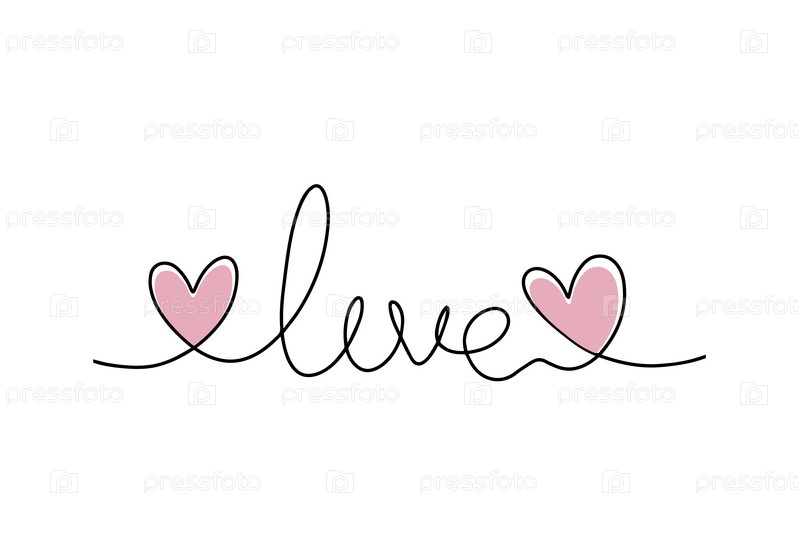 Непрерывный рисунок пары сердец и надпись love. Модная минималистическая иллюстрация. Рисование в одну линию