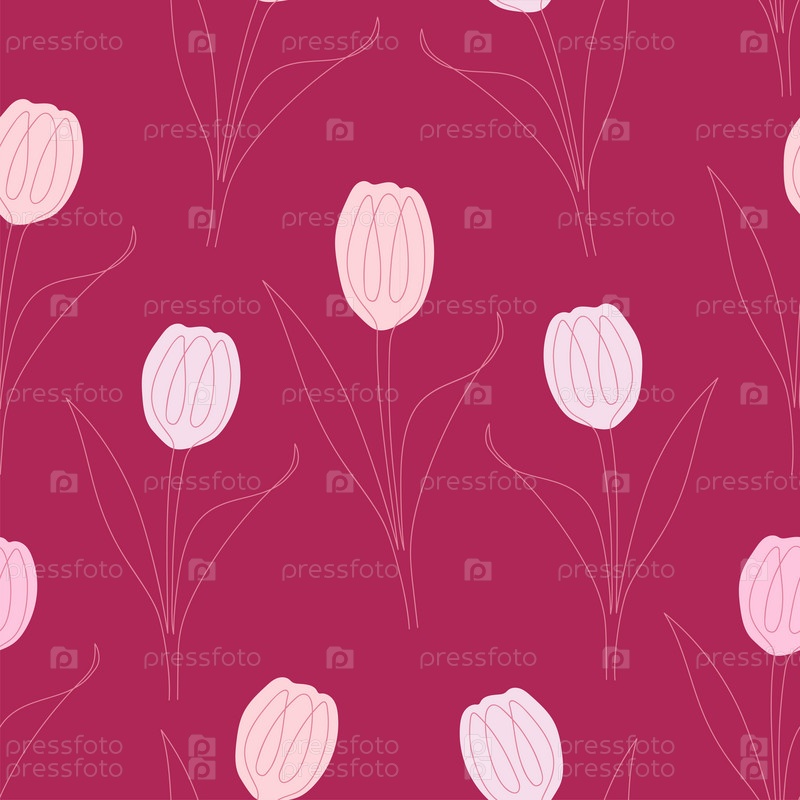 Бесшовный узор из тюльпанов, нарисованных одной линией. Векторная иллюстрация на розовом фоне