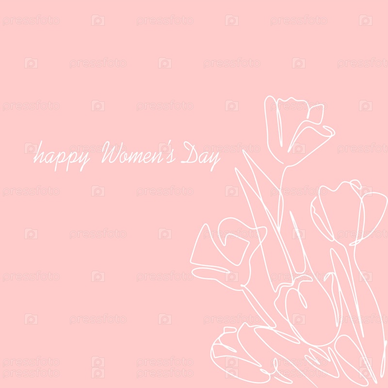 Баннер-открытка с Международным женским днем. Розовый цвет иллюстрации с цветами