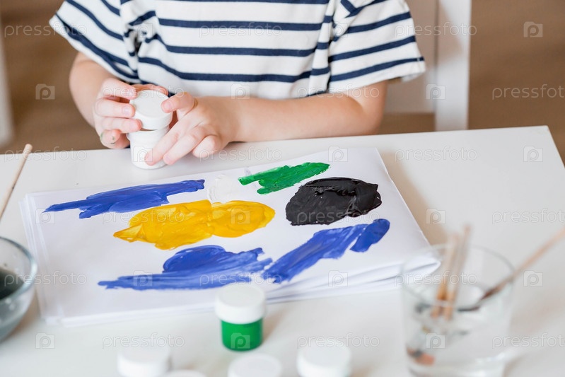 Маленький мальчик 3 лет рисует на бумаге. Детские игры для развития ребенка. Детский сад