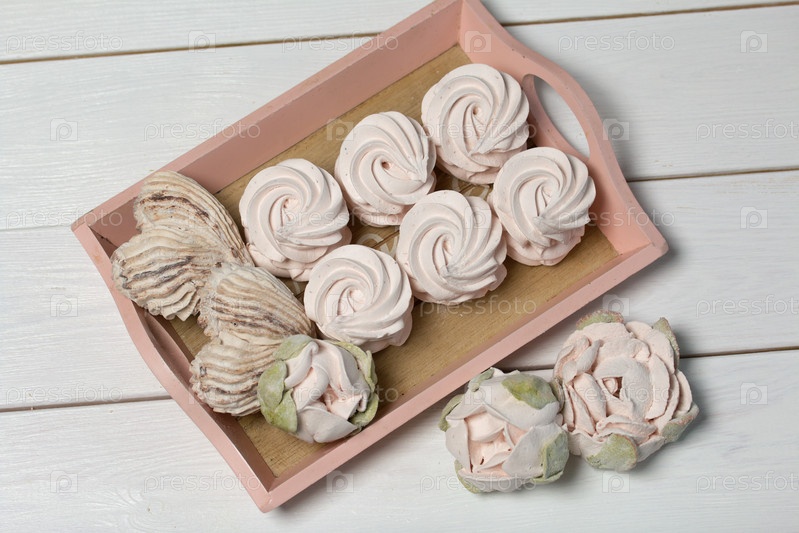 Зефир на подносах. Зефир домашний. Крупный план