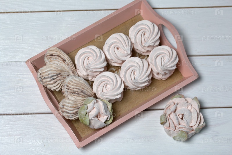 Зефир на подносах. Зефир домашний. Крупный план