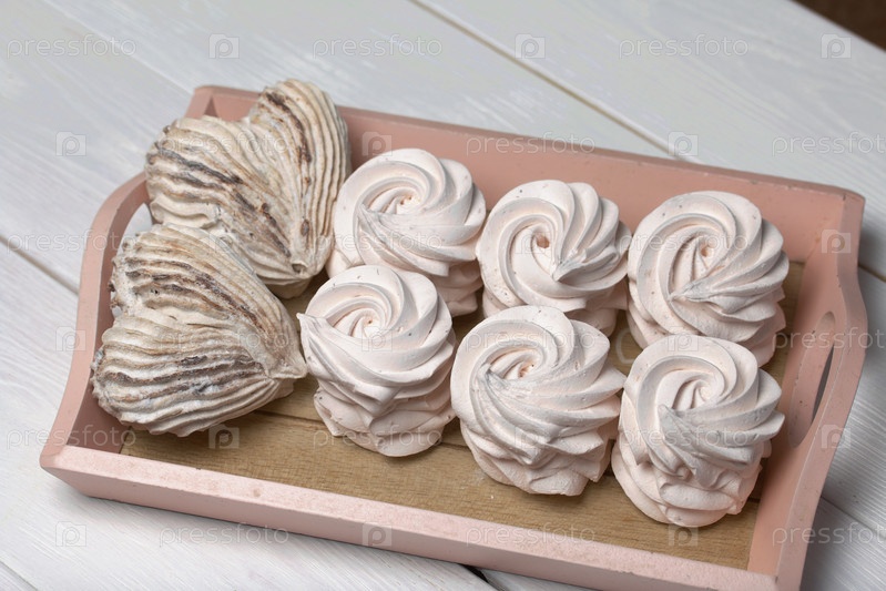 Зефир на подносах. Зефир домашний. Крупный план
