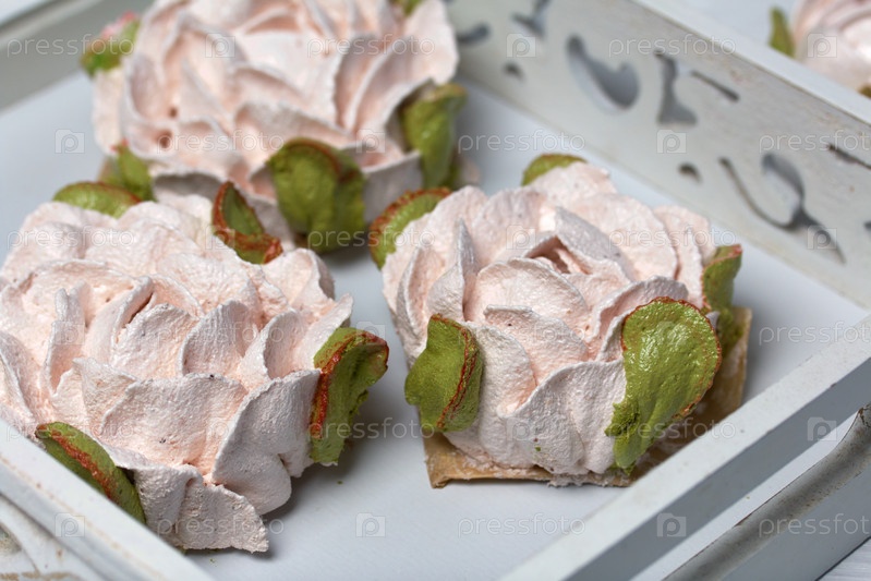 Цветы зефира на белых досках. Зефир домашний. Крупный план