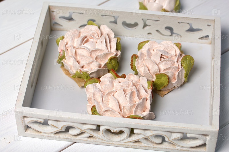 Цветы зефира на белых досках. Зефир домашний. Крупный план