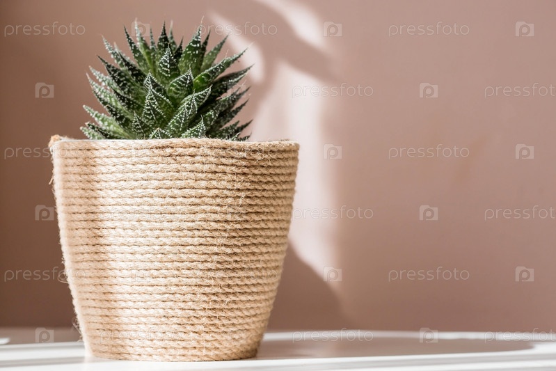 Садоводство, домашнее хозяйство и растениеводство. Многие комнатные растения растут в цветочных горшках в интерьере комнаты. Уход за цветком