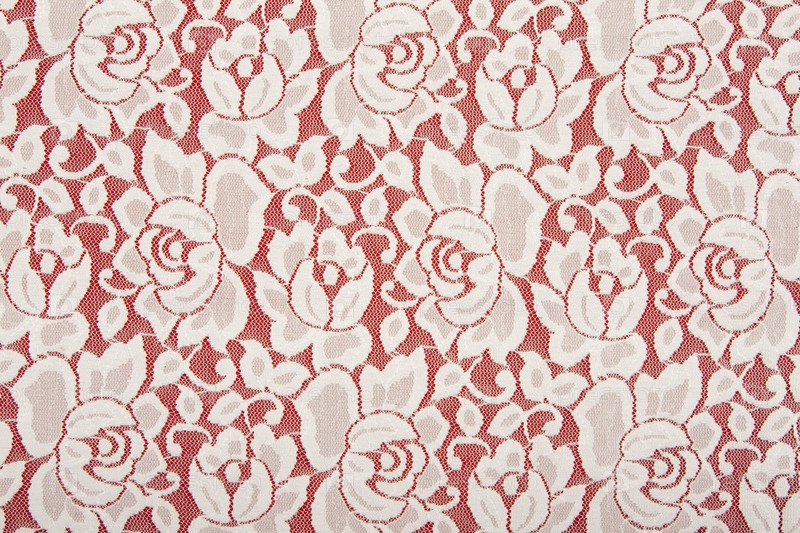 Белое кружево с цветочным узором, на красном фоне