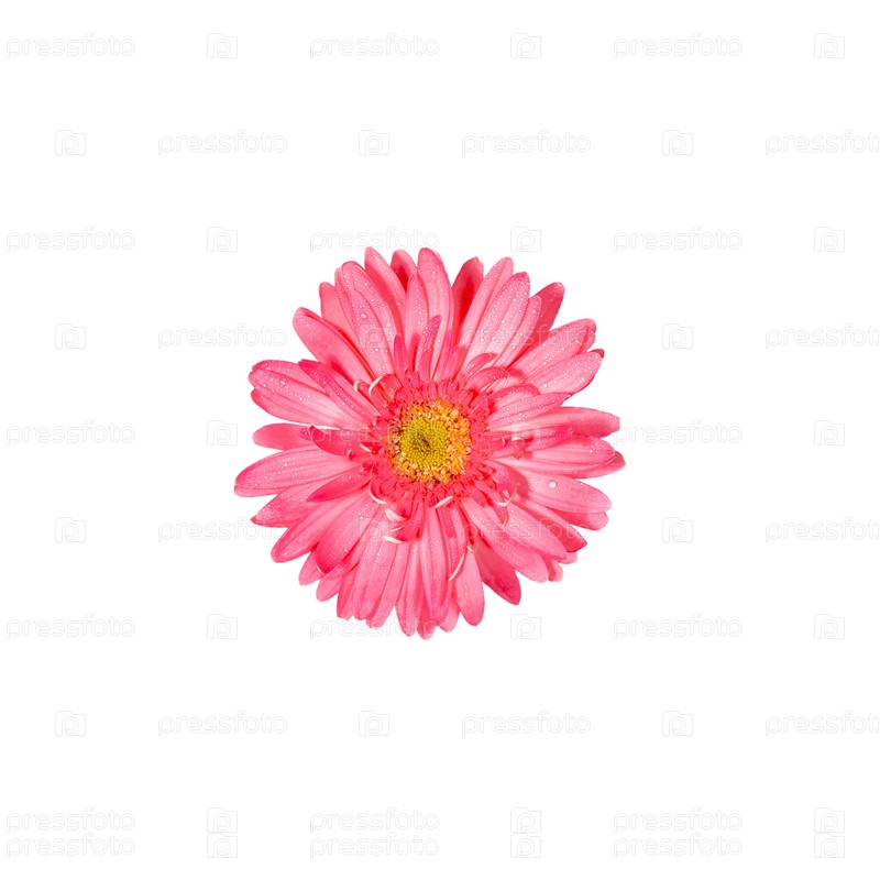 Праздничная минимальная планировка с одним нежно-розовым цветком герберы, выделенным в центре белого фона. Копировать пространство