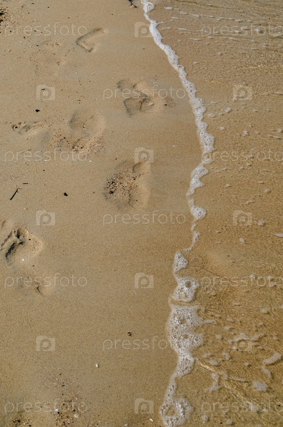 Босые следы на мокром песке размыты морской волной