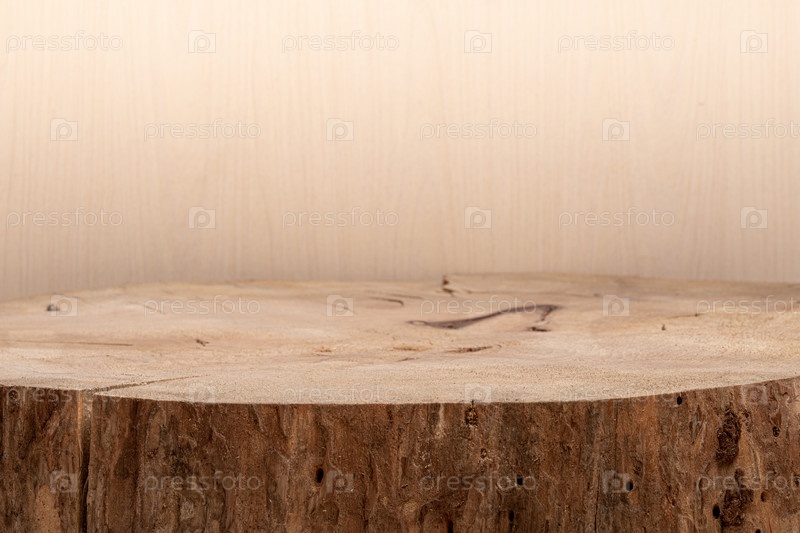 Большой необработанный деревянный срез в качестве креативного подиума для дизайна, продвижения, продажи, презентации любого натурального органического продукта или косметики. Подставка из натурального дерева, деревянная текстура для демонстрации продукта.