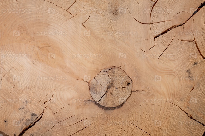 Поверхность поперечного сечения большой старой ели с годовыми кольцами, сучками и трещинами. Красивая богатая текстура натурального хвойного дерева в качестве фона или обоев. Закрыть. Горизонтальная ориентация