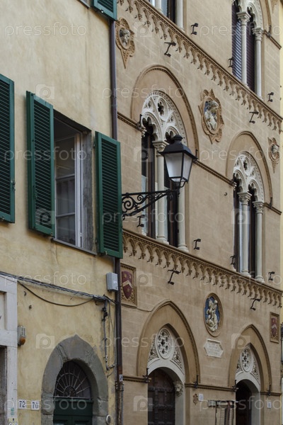 Фрагменты архитектуры домов на улицах туристического центра в Пизе Италия