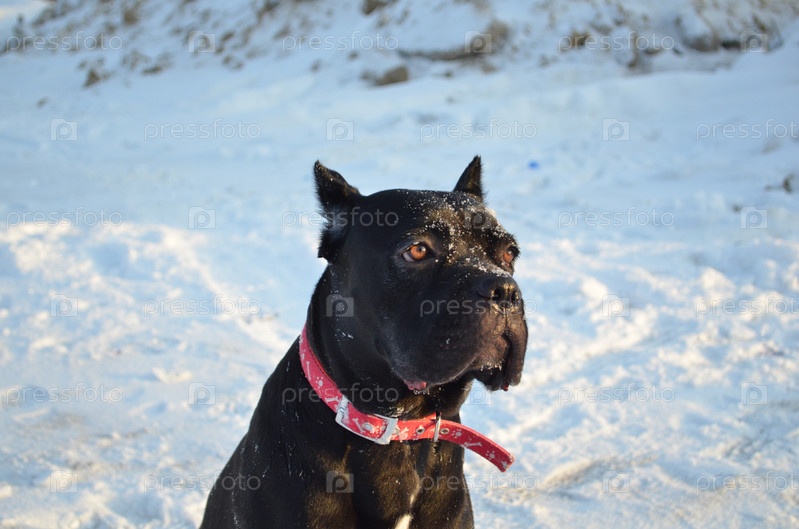 Крупным планом портрет черной собаки породы кане корсо