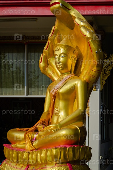 Золотая статуя Будды с семиглавым змеем в Храме Большого Будды в Паттайе