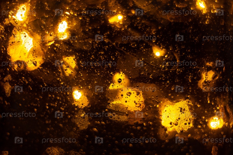 Золотой блестящий фон с огнями боке. Желтая блестящая размытая текстура. Огни и пузыри абстрактный расфокусированный фон