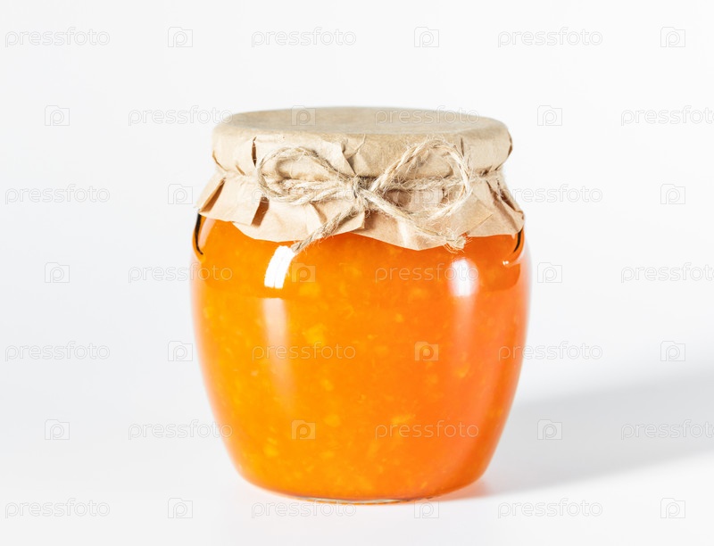 Варенье в стеклянной банке на белом фоне