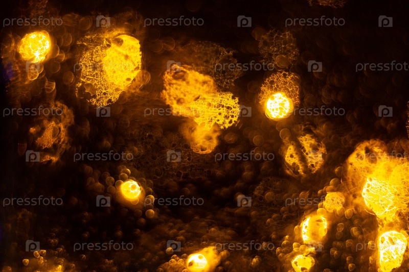 Золотые блестящие огни боке фона. Желтая блестящая размытая текстура. Огни и пузыри абстрактный расфокусированный фон