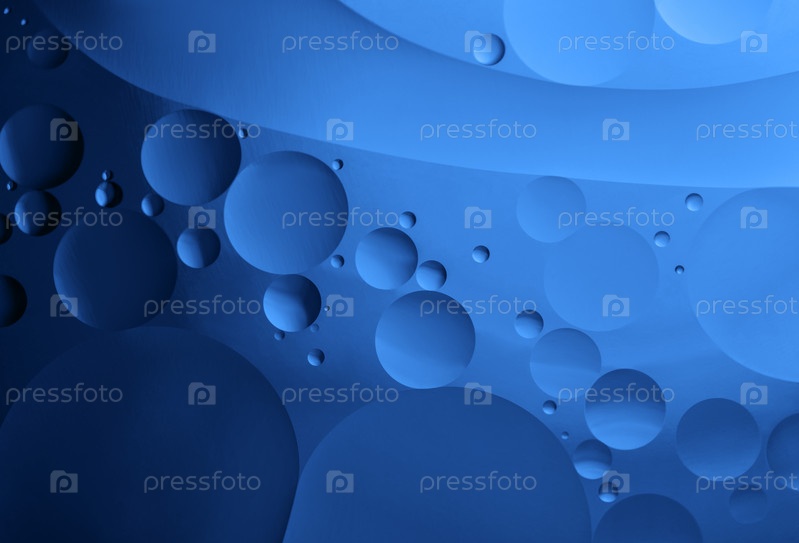 Классический синий фон. Цвет 2020 года. Масляные пузыри в воде