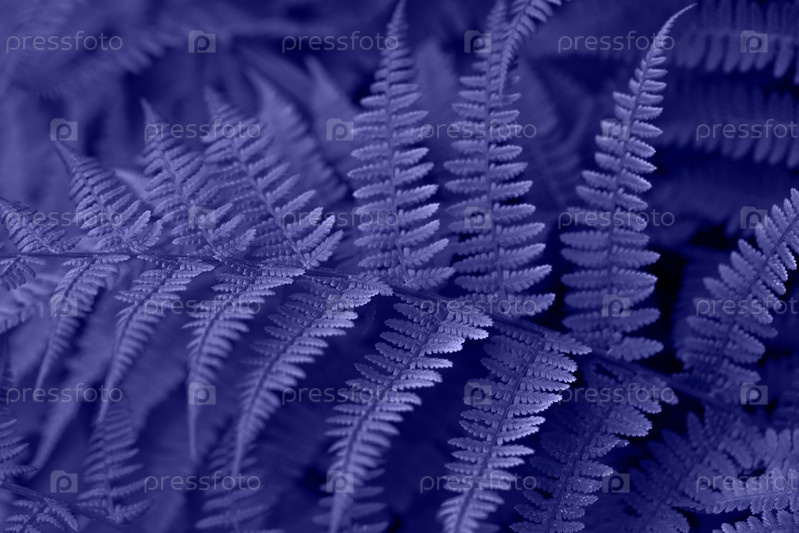 Красивый фиолетовый папоротник крупным планом. Цветочная текстура и фон, узор. Модный цвет очень пери в 2022 году. Креативный образ. Текстурированные листья