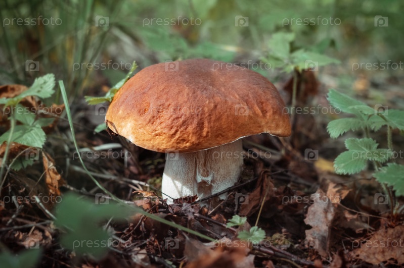Красивый подосиновик на зеленом фоне в лесу крупным планом. Съедобные вкусные грибные булочки, белые грибы, белые грибы, белые грибы, королевский подосиновик макрос. Гриб с коричневой шляпой в лесу
