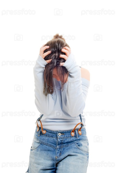 Расстроенная женщина, изолированная на белом