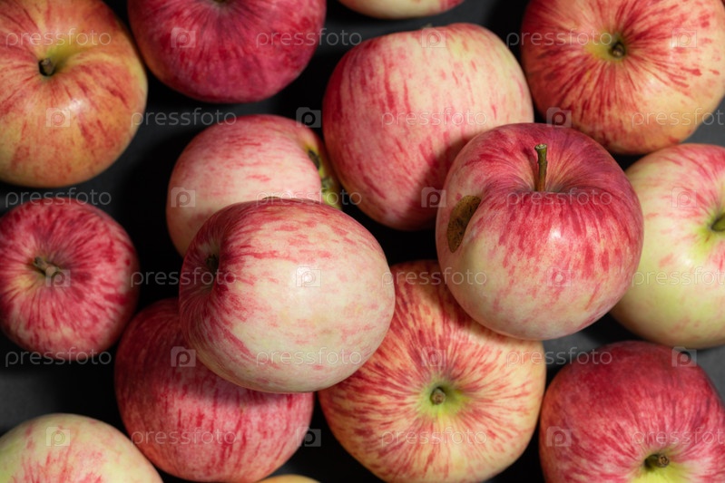 Яблоки заделывают фон. Красные полосатые яблоки. Органические фрукты. Вид сверху. Осенний урожай