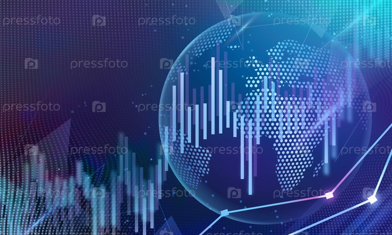 Абстрактный фон с творческой диаграммой форекс на синем фоне. Концепция торговли, финансов, технологий и коммуникаций