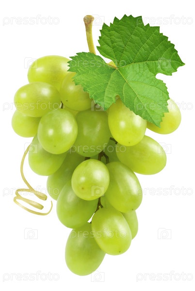 Виноград изолирован. Букет спелого зеленого винограда с зелеными листьями и виноградной лозой