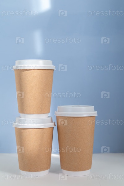 Пустой бумажный стаканчик на голубом фоне
