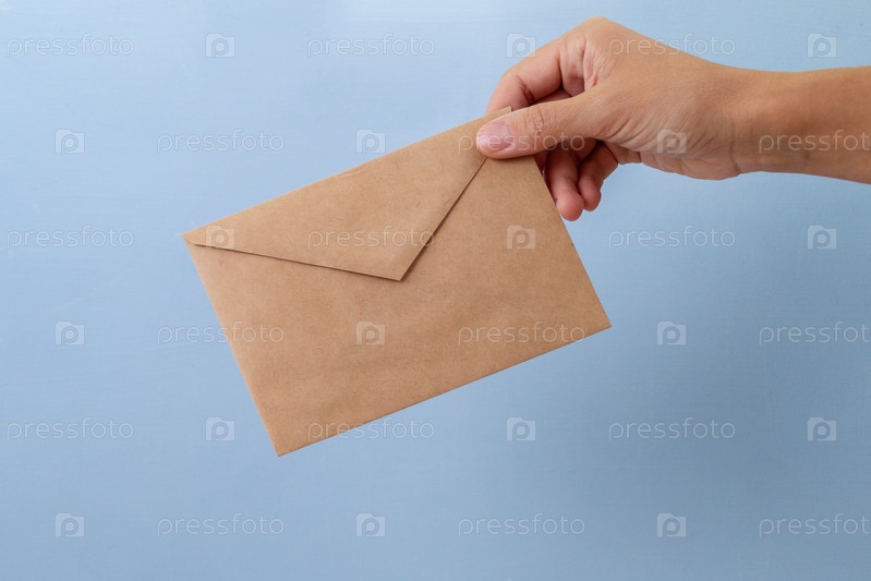 Пустой бумажный конверт на голубом фоне