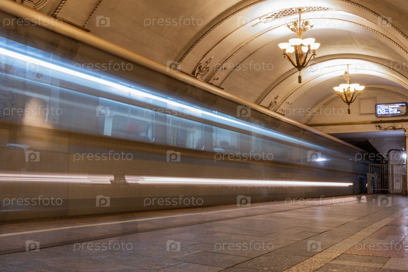 Прибытие поезда на станцию метро Арбатская, Москва