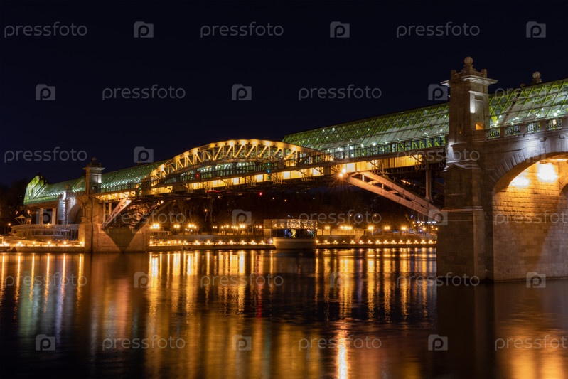 Пушкинский (Андреевский) пешеходный мост через Москву-реку ночью