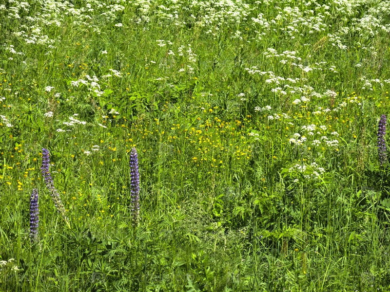 Пурпурные люпины цветут летом в поле