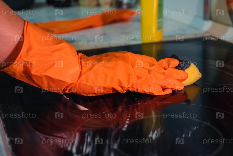 Мытье домашней плиты. Выборочный фокус. Концепция очистки электрической плиты