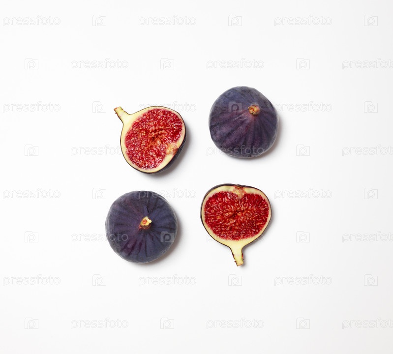 Свежий инжир, изолированные на белом фоне. Фотография еды. Фиолетовый инжир с красными семенами. Плоская планировка, вид сверху